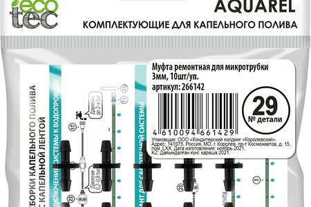 Соединительная муфта используется для ремонта и увеличения длины микротрубки в системе капельного полива.