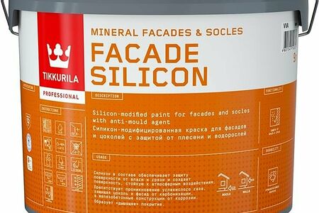 Краска FACAD SILI CON VVA 9 л от TIKKURILA предназначена для декорирования цоколей и фасадов помещений различного назначения.