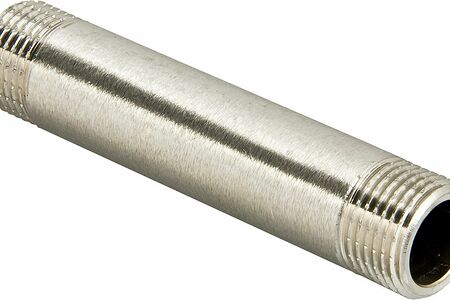 Латунный никелированный резьбовой фитинг с двухсторонней наружной трубной цилиндрической резьбой по ГОСТу 6357 (ISO 228, EN 10226). Длина 200 мм, диаметр - 1/2". Cерия VTr.652.N