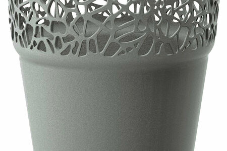 Кашпо Naturo представляет собой пластиковую емкость, используемую для посадки комнатных растений и цветов. Изделие из пластика выполнено в сером цвете. Верхняя часть кашпо дополнена оригинальным узором. Изделие имеет высокодекоративный внешний вид. Такое кашпо поможет озеленить офисное или жилое пространство, создать теплую, уютную атмосферу. Материал изготовления не боится механических повреждений, не бьется в случае падения.