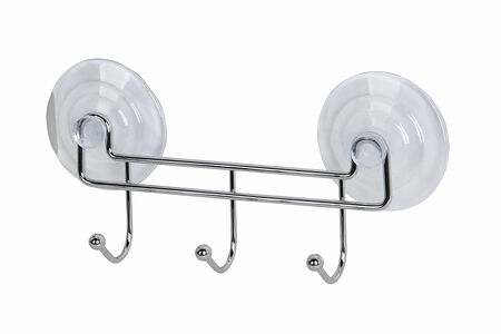 Вешалка с тремя крючками на двух присосках Corsa выполнена из прочного металла с хромо-никелевым покрытием, стойкого к механическому воздействию и влажности. Благодаря крючкам аксессуар эргономично размещает несколько принадлежностей, а силиконовые присоски позволяют разместить изделие в любом удобном месте кухни или ванной комнаты.