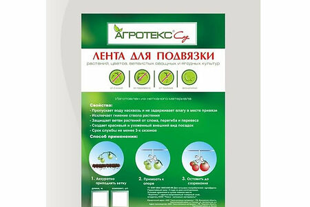 Лента садовая длиной 10 м упакована в прозрачный полиэтиленовый пакет с вкладышем, на котором размещена информация о товаре и его использовании. в упаковке: две штуки. Назначение: защита растений от перегибания и слома в период роста. Состав: 100 % полипропилен с УФ-стабилизатором, пропускает воздух и воду, цвет: белый. Срок службы - 3 сезона.