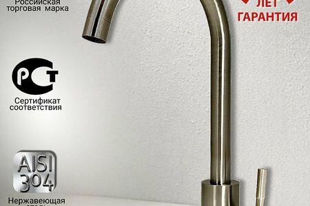 Смеситель для кухонной мойки 35-03 поворотный излив, нержавеющая сталь доставка