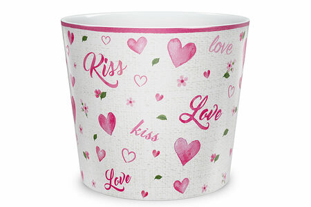 Керамическое кашпо Scheurich Поцелуй покрыто глянцевой глазурью. Рисунки в розовых тонах будут гармонично сочетаться с цветом зелени.