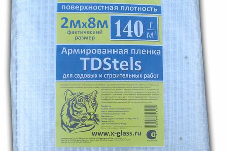 Армированная пленка TDStels - это трехслойный материал, состоящий из двух внешних слоев светостабилизированной пленки, изготовленной из полиэтилена высокого давления, между которыми находится основной слой армирующей сетки. В качестве материала, из которого изготавливается сетка, обычно используется лавсановая или полипропиленовая нить, полиэтилен высокого давления. Армирующая сетка придает пленки особую механическую прочность, устойчивость к растяжению – основное свойство и преимущество армированной пленки перед другими укрывными рулонными материалами. Пленка способна выдержать любые сложные погодные условия: шквалистый порывистый ветер, град, метель и сильный дождь, имеет большую прочность на разрыв. Если пленка получает повреждение, то оно не расползается по полотну, а сдерживается сеткой и легко ремонтируется. В случае, когда армированная пленка используется как часть строительной конструкции, срок службы ее не ниже срока эксплуатации самой строительной конструкции. Пленка выдерживает большие перепады температур: температурный интервал эксплуатации пленки от -40◦ С до +80◦ С, с сохранением своих свойств. Армированная пленка, благодаря своим прочностным характеристикам, предназначена для широкого использования в современном строительстве, сельском хозяйстве, промышленной упаковке.