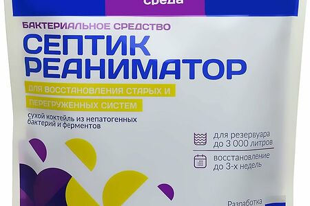 Септик Реаниматор. Препарат перерабатывает избыточный твердый осадок, разуплотняет и снижает объем образовавшегося ила, очищает фильтрующий колодец. Содержит особый компанент разлагающий накопившийся жир.Снижает необходимость опорожнения и очистки нагруженного, плохо справляющегося с отведением условно очищенной воды септика. Показатели правильного действия системы и препарата: увеличение пропускной способности септика, снижение илового осадка на 20% в течение 21 дня.