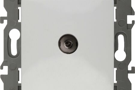 Розетка телевизионная одиночная серии Эра Elegance цвет белый 14-3101-01. Рамки приобретаются отдельно. Рамки Эра Elegance ПЛАСТИК: 1 пост 14-5001-хх, 2 поста 14-5002-хх, 3 поста 14-5003-хх, 4 поста 14-5004-хх, 5 постов 14-5005-хх; СТЕКЛО: 1 пост 14-5101-хх, 2 поста 14-5102-хх, 3 поста 14-5103-хх, 4 поста 14-5104-хх; МЕТАЛЛ: 1 пост 14-5201-хх, 2 поста 14-5202-хх, 3 поста 14-5203-хх, 4 поста 14-5204-хх; ДЕРЕВО: 1 пост 14-5301-хх, 2 поста 14-5302-хх, 3 поста 14-5303-хх, 4 поста 14-5304-хх (хх - код цвета: 00-прозрачный, 01-белый, белёный дуб, 02-слоновая кость, 03-алюминий, 04-шампань, 05-чёрный, чёрное дерево, 07-ясень, 09-дуб, 10-венге, 11-клён, 14-медь, 21-жёлтый, 22-оранжевый, 23-красный, 25-бордо, 26-лайм, 27-зелёный, 28-голубой, 29-синий, 30-розовый, 31-мокко, 32-серый, 41-сталь, 42-титан).
