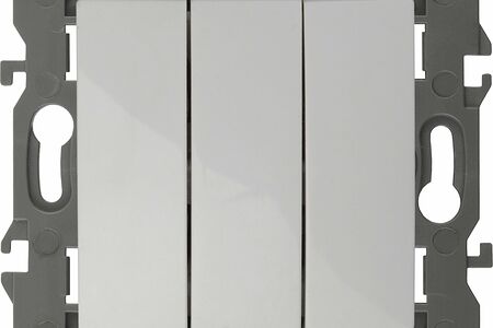 Выключатель 3-клавишный Эра Elegance белый 14-1107-01. Рамки приобретаются отдельно. Рамки Эра Elegance ПЛАСТИК: 1 пост 14-5001-хх, 2 поста 14-5002-хх, 3 поста 14-5003-хх, 4 поста 14-5004-хх, 5 постов 14-5005-хх; СТЕКЛО: 1 пост 14-5101-хх, 2 поста 14-5102-хх, 3 поста 14-5103-хх, 4 поста 14-5104-хх; МЕТАЛЛ: 1 пост 14-5201-хх, 2 поста 14-5202-хх, 3 поста 14-5203-хх, 4 поста 14-5204-хх; ДЕРЕВО: 1 пост 14-5301-хх, 2 поста 14-5302-хх, 3 поста 14-5303-хх, 4 поста 14-5304-хх (хх - код цвета: 00-прозрачный, 01-белый, белёный дуб, 02-слоновая кость, 03-алюминий, 04-шампань, 05-чёрный, чёрное дерево, 07-ясень, 09-дуб, 10-венге, 11-клён, 14-медь, 21-жёлтый, 22-оранжевый, 23-красный, 25-бордо, 26-лайм, 27-зелёный, 28-голубой, 29-синий, 30-розовый, 31-мокко, 32-серый, 41-сталь, 42-титан).