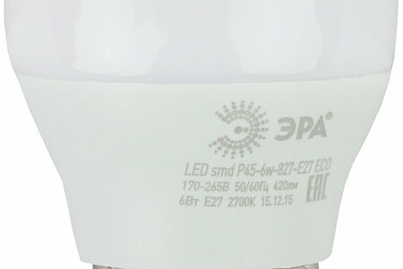 Светодиодная лампа ЭРА ЭКО E27 6 Вт 480 лм 2700 К шар доставка