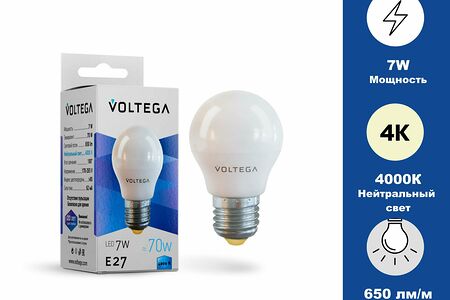 Лампа светодиодная Шар.Globe Ваттность 7W Цоколь Е27 Цветовая температура 4000К