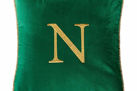 Декоративная односторонняя подушка из полиэстера зеленого цвета 40х40 см. с контрастным кантом и вышитой золотой буквой «N». Изделие из гипоаллергенного материала исключает появление пылевых клещей. Бархатная поверхность приятна на ощупь. Съёмный чехол на потайной молнии легко чистить и стирать. Плотный наполнитель хорошо держит форму, благодаря чему изделие не проминается и не деформируется. Подушка продолжает коллекцию Zolotoy Roy, в тандеме с остальными аксессуарами позволяет создать гармоничный интерьер в едином стиле.