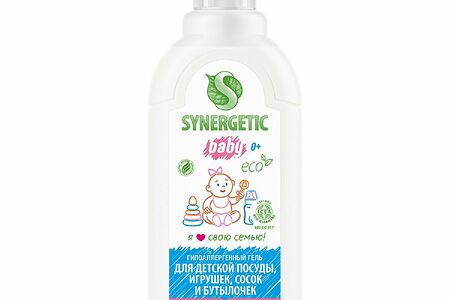 Концентрированный гель для посуды SYNERGETIC – это экологичное, безопасное и эффективное средство для мытья детской посуды, сосок, бутылочек, игрушек и прочих товаров детского ассортимента.
