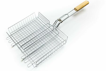 Удобная конструкция способствует равномерному приготовлению пищи. Материал безвреден для здоровья, при нагревании не выделяет вредных веществ и не образует с пищей ядовитых соединений. Материал ручки не нагревается и не выскальзывает, ее конструкция способствует быстрому переворачиванию. Аксессуар устойчиво устанавливается на мангал, позволяя приготовить продукты различного размера. Овощи, мясо, хлеб или морепродукты равномерно покроются румяной корочкой и не пригорят к прутьям.