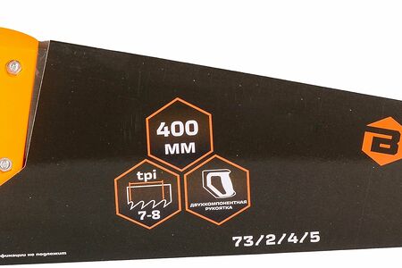 С помощью двухкомпонентной рукоятки обеспечивается надежный хват, и при длительной работе не натирает руки.длина рабочей части: 400 мм, тип заточки: трехгранная, шаг зуба: 7-8 TPI