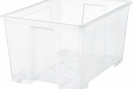 Контейнер пластиковый 130 л прозрачный 78х43х56 смКонтейнер изготовлен из легкого прозрачного пластика, что позволяет видеть содержимое и всегда знать, где что лежит.Подходит для хранения самых разнообразных вещей: от детских игрушек и аксессуаров до одежды и текстиля.Дополните контейнер подходящей крышкой со встроенной функцией защелкивания, которая надежно удерживает крышку на месте и защищает вещи от влаги и пыли.С крышкой контейнеры можно ставить друг на друга, что позволяет максимально эффективно использовать пространство в закрытом шкафу или на открытых полках стеллажей.Протестировано и одобрено для использования в ванных комнатах.