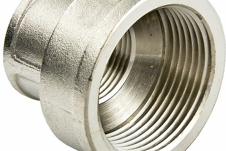 Латунная никелированная муфта для перехода с одного диаметра трубы на другой.