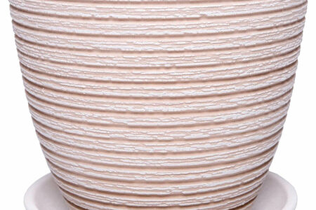 Необычная рельефная фактура и модный оттенок “охра” сделают данный цветочный горшок настоящим украшением интерьера в стиле прованс и романтизм. Благодаря способности материала стойко переносить перепады температур такой сосуд станет уютным “домом” практически для всех видов растений.