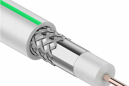 В качестве диэлектрика применяется вспененный полиэтилен, поверх которого наложен экран из алюминиевой фольги. Материал внешней изоляции - прочный поливинилхлорид белого цвета. Длина изделия составляет 50 метров. Диапазон рабочих температур варьируется от -40 до 60 градусов.
