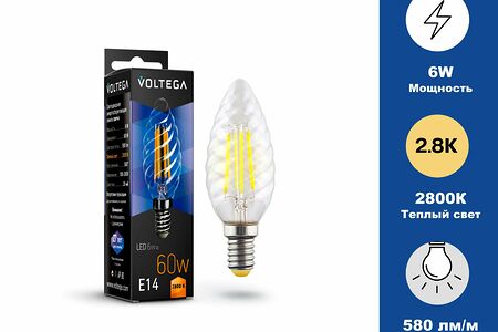 Лампа светодиодная Свеча витая, Candle corn ( transparent ) - Ваттность 6W, Цоколь Е14, Цветовая температура 2800К