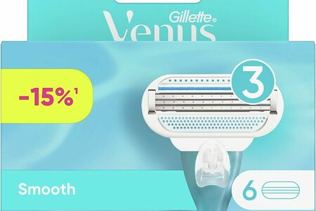 Сменные кассеты для женской бритвы Venus Smooth, 6 шт. 3 повторяющих изгибы тела лезвия и разглаживающие кожу защитные подушечки обеспечивают гладкое и чистое бритье одним движением.