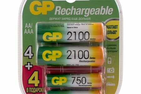 Аккумуляторы GP 210AA/75AAAHCFR-2CR8 2100mAh AA 4шт + 750mAh AAA 4шт доставка