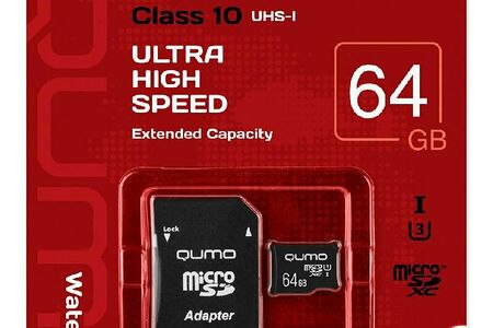 Карта памяти Qumo microSDXC class 10 UHS Class 3 64GB + SD adapter (QM64GMICSDXC10U3) доставка