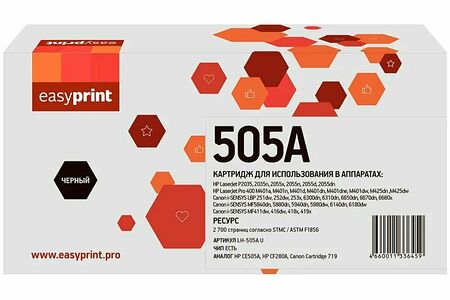 Картридж EasyPrint LH-505A U (CE505A/CF280A/Canon 719) для HP LJ P2035/2055/M401/M425/Canon LBP6300/MF5840/5940 (2700 стр.) с чипом доставка