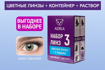 Набор цветные линзы Adria Color 2T COLOR BOX №3 GREEN квартальные BC 8.6 SPH -8.00 DIA 14.2 2 шт доставка