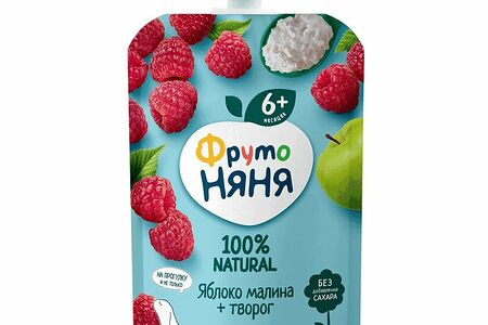 Пюре ФрутоНяня с яблоком, малиной и творогом без сахара 90 г доставка
