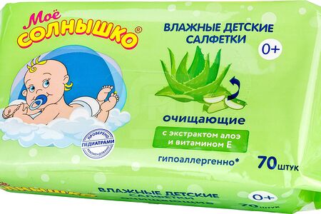 Салфетки влажные Моё солнышко 70 шт с экстрактом алоэ и витамином Е доставка