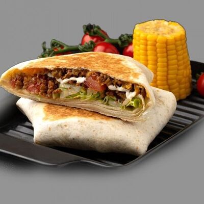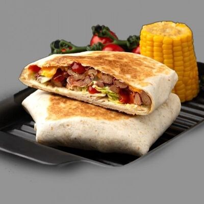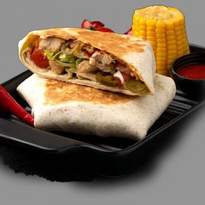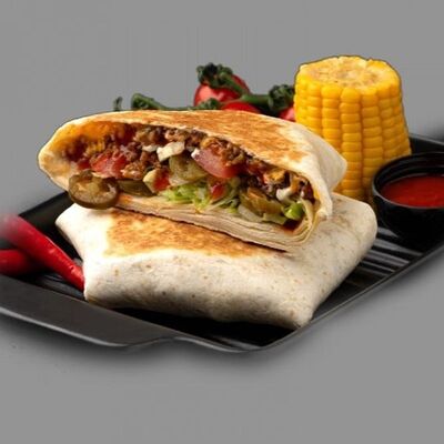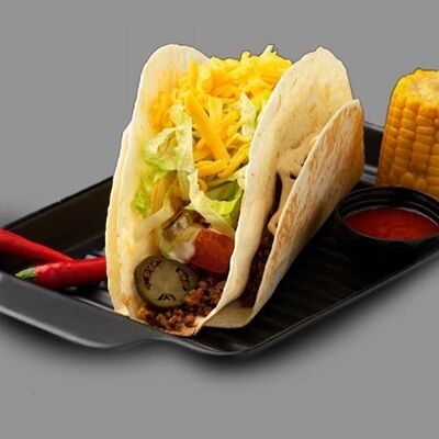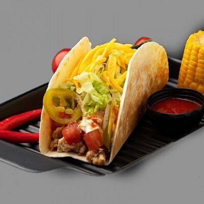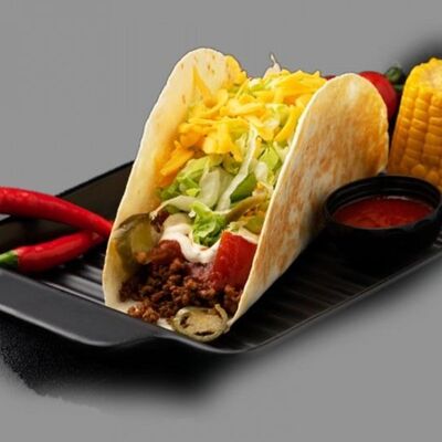 Тортилья, говядина, помидоры, лук, перец халапеньо, сыр, салат айсберг, кукуруза