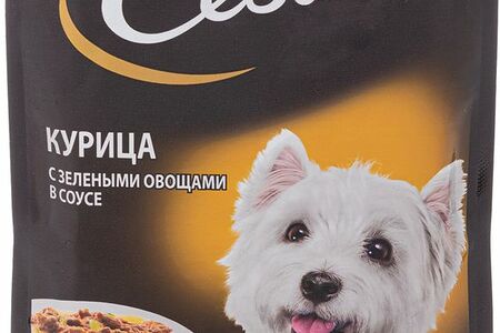 Корм консервированный полнорационный Цезарь для взрослых собак всех пород Курица с зелеными овощами в соусе доставка