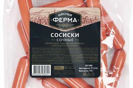 Сосиски Мясная Ферма Сочные вареные 750г доставка