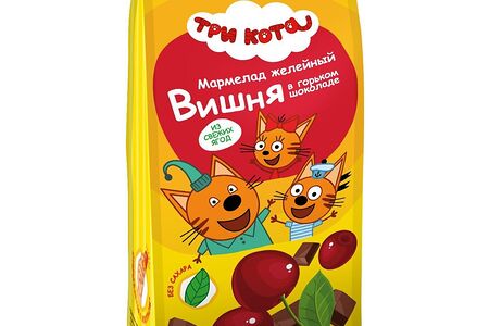 Мармелад Лакомства для здоровья желейный, Три кота с вишней в горьком шоколаде доставка