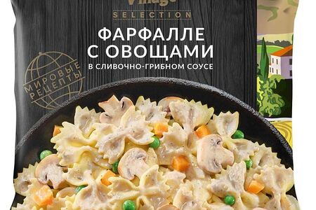 Овощи замороженные Global Village Фарфалле с овощами в сливочно-грибном соусе, 400г доставка