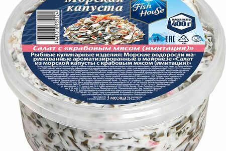 Салат Fish House морская капуста с крабовым мясом, 400г доставка