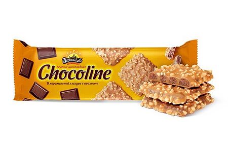 Печенье Шоколадово Chocoline в карамельной глазури с арахисом доставка