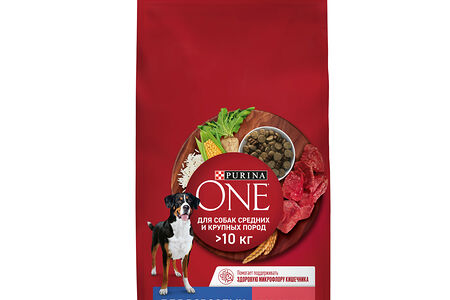 Сухой корм Purina ONE® для взрослых собак средних и крупных пород, с высоким содержанием говядины и с рисом, 1,8 кг доставка