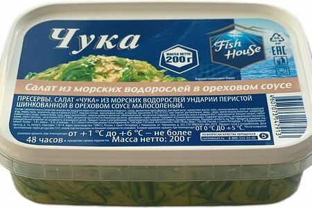 Салат Fish House Чука из морских водорослей ундарии перистой шинкованной в ореховом соусе малосолёный, 200г доставка