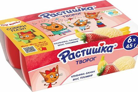 Творог Растишка клубника, банан, пломбир, с 3 лет, 3.5% (6 шт.) доставка