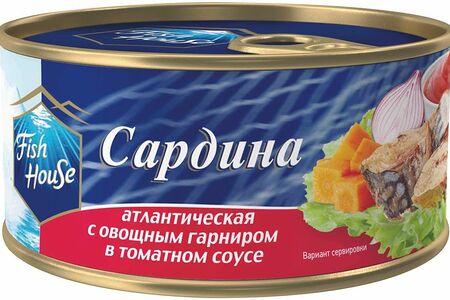 Сардина Fish House с овощным гарниром в томатном соусе 240г доставка