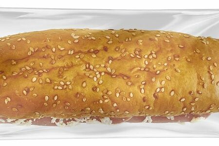 Срок годности в днях: 7Состав: багет с кунжутом (мука пшеничная хлебопекарная высшего сорта, вода, сахар, масло растительное, дрожжи хлебопекарные, соль, маргарин (растительные масла, вода, эмульгаторы: Е471, Е475, Е322 (лецитин), консервант сорбат калия, регулятор кислотности лимонная кислота, ароматизатор, красители: Е100, Е160b), семена кунжута, улучшитель хлебопекарный (мука пшеничная, стабилизаторы: Е170, Е472е, антиокислитель аскорбиновая кислота, ферментные препараты)), ветчина (мясо куриное, соль, крахмал картофельный, клетчатка растительная, изолят соевого белка, вода, животный белок, чеснок сушеный, глюкоза, регулятор кислотности Е450(iii), загуститель Е407, желирующий агент Е508, усилитель вкуса и аромата Е621, антиокислитель лимонная кислота, нитритно-посолочная смесь (соль, фиксатор окраски Е250), краситель кармины), сыр полутвердый (молоко питьевое, бактериальная закваска мезофильных микроорганизмов, соль, краситель аннато, уплотнитель Е509, ферментный препарат животного происхождения), сыр мягкий (молоко питьевое, сливки питьевое, стабилизаторы: Е1442, Е410, Е412, соль, бактериальная закваска мезофильных микроорганизмов), майонез (масло подсолнечное, вода, сахар, соль, яичный желток, регуляторы кислотности: кислота уксусная, молочная кислота, загуститель Е1422, консервант Е200, стабилизаторы: Е415, Е412, ароматизатор, краситель каротины), кетчуп (вода, томатная паста, сахар, уксус, соль, пищевые волокна, перец кайенский, чеснок, загуститель Е415, ароматизаторы натуральные (содержат сельдерей)). На предприятии изготавливаются продукты, содержащие аллергены: сою, рыбу, горчицу, орехи, арахис, кунжут, ракообразные, моллюски, сульфитыПищевая ценность: Калорийность: 331Белки: 12.2Жиры: 10.9Углеводы: 46.2Страна изготовления: РоссияПроизводитель: Пятерочка Кафе