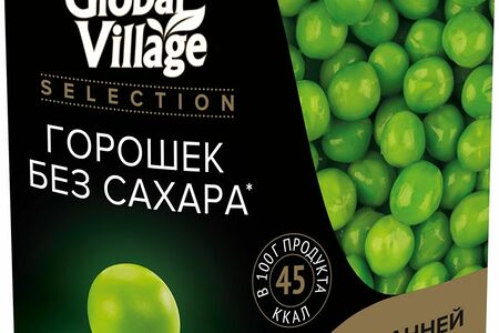 Горошек Global Village Молодой без добавления сахара из мозговых сортов 400г доставка