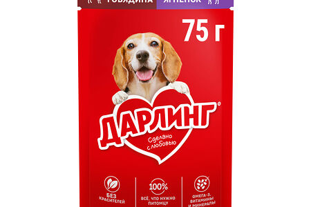 Влажный корм ДАРЛИНГ для взрослых собак, говядина с ягненком в подливе доставка