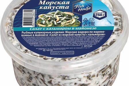 Салат Fish House из морской капусты с кальмаром в майонезе, 250г доставка