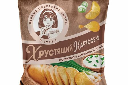 Чипсы картофельные Хрустящий картофель в ломтиках со вкусом Сметаны и лука доставка