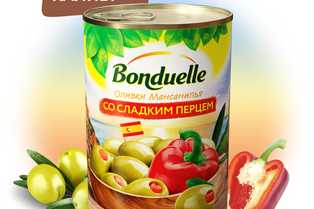 Оливки без косточки Bonduelle, со сладким перцем, 300 г доставка