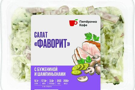 Салат Пятерочка Кафе Фаворит с бужениной и шампиньонами 200г доставка