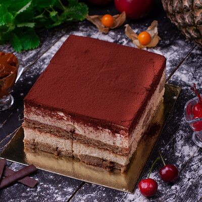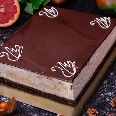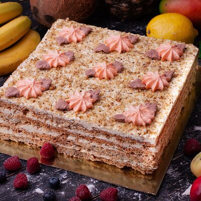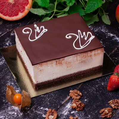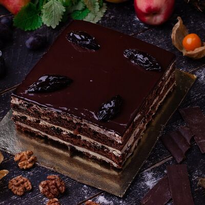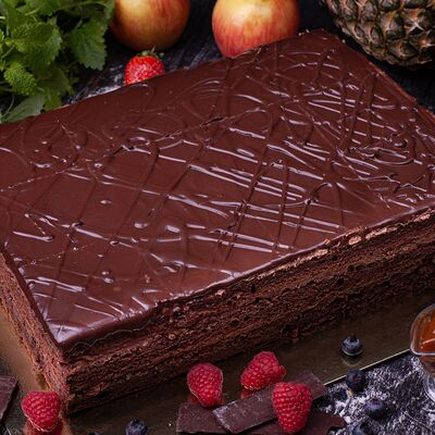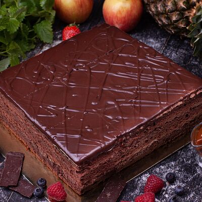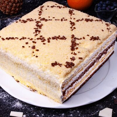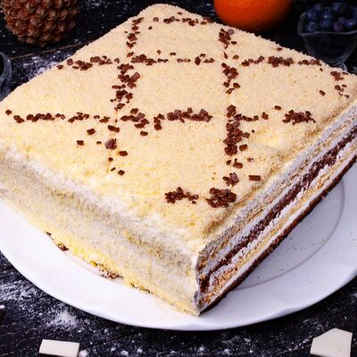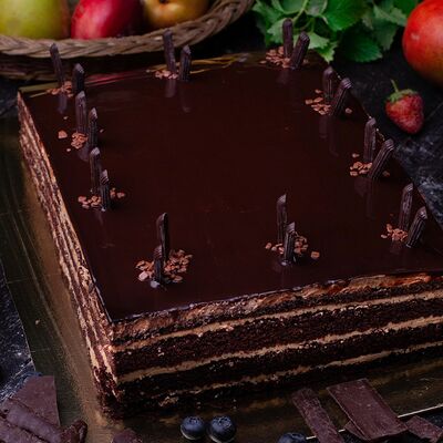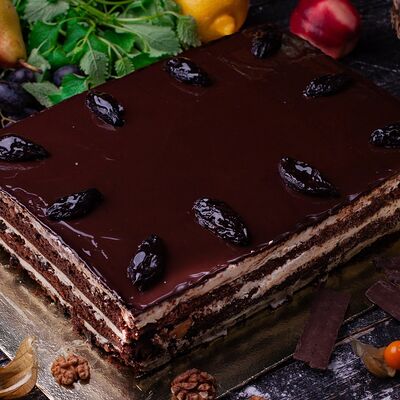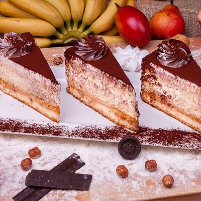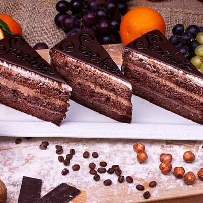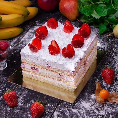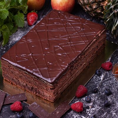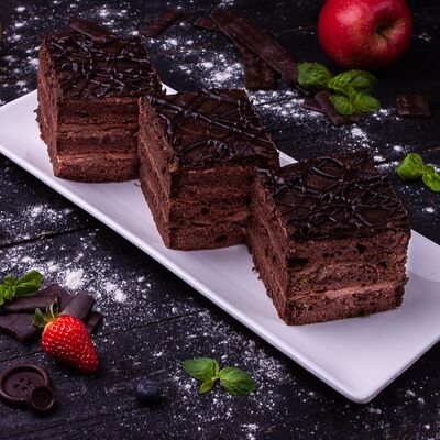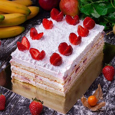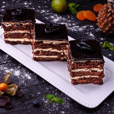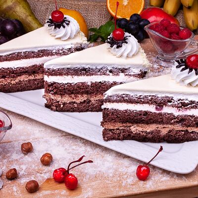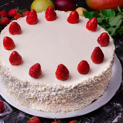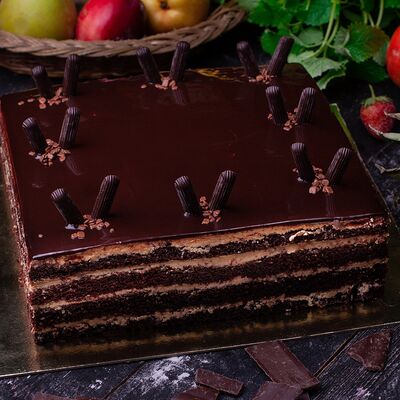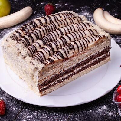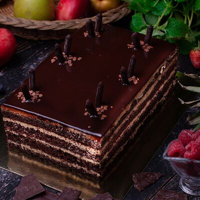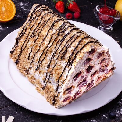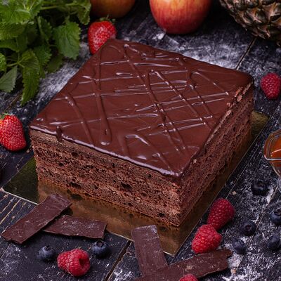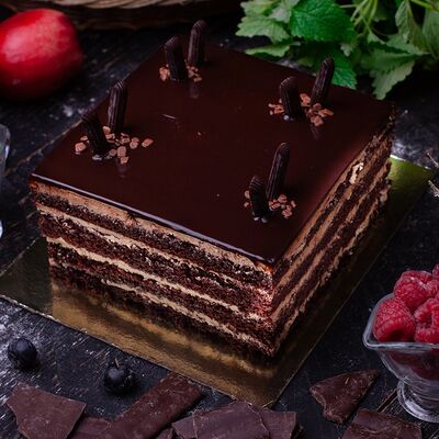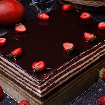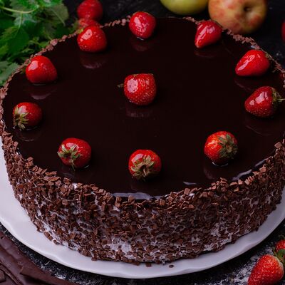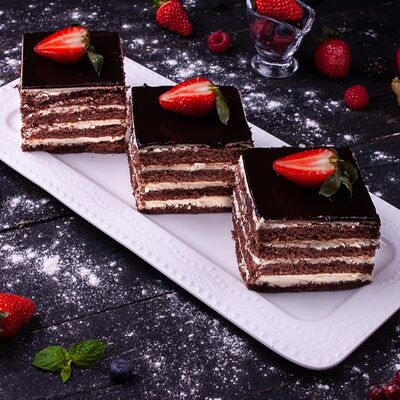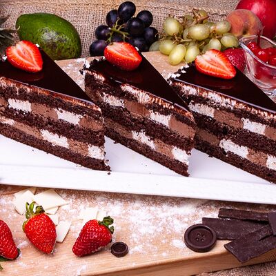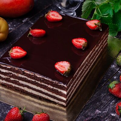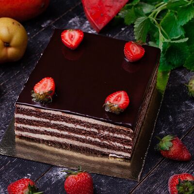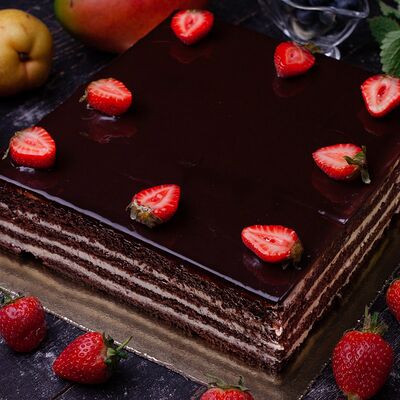 Бисквит шоколадный, крем шоколадно-сливочный, клубника