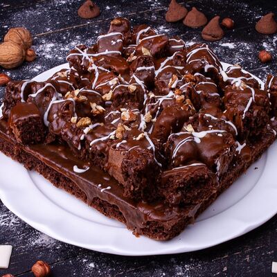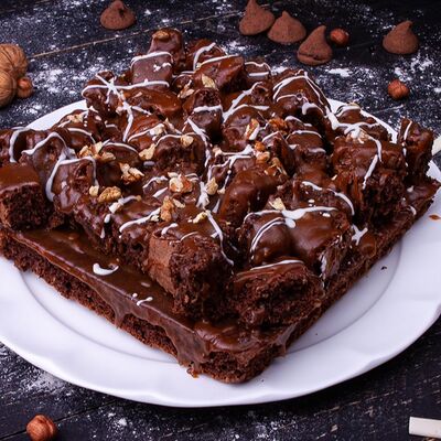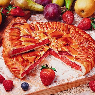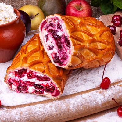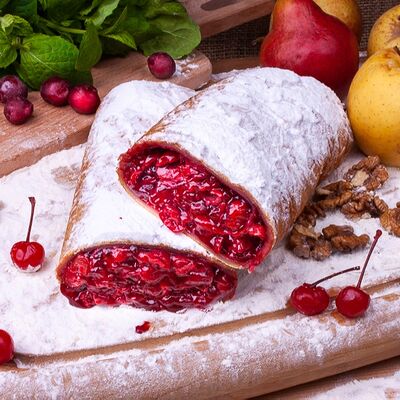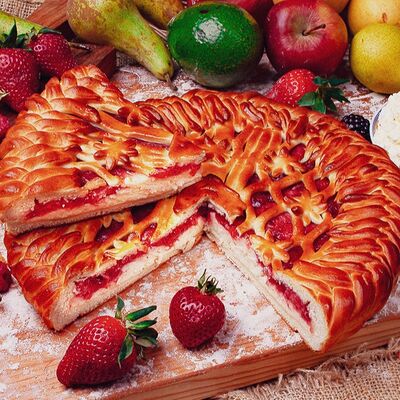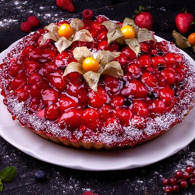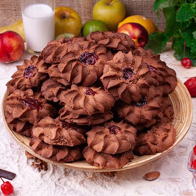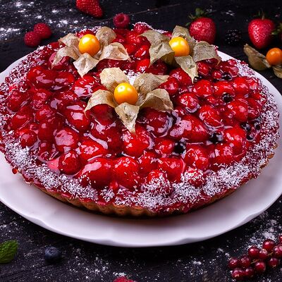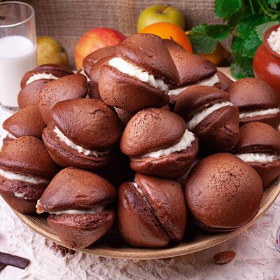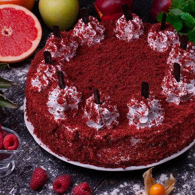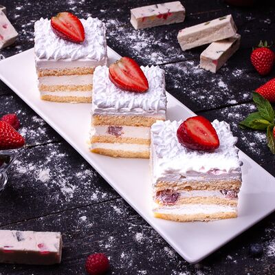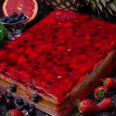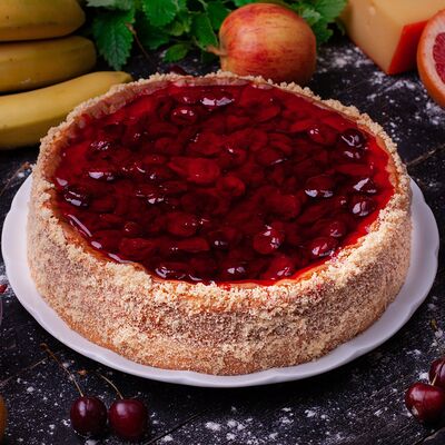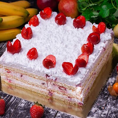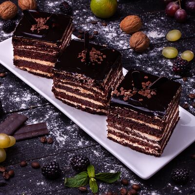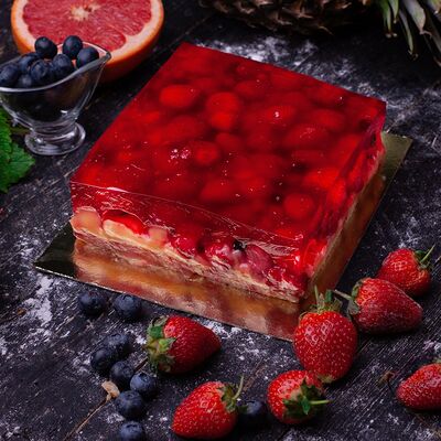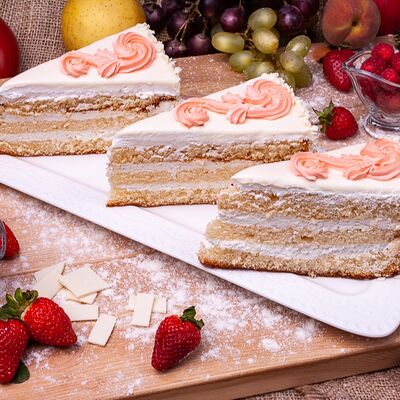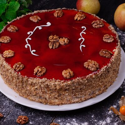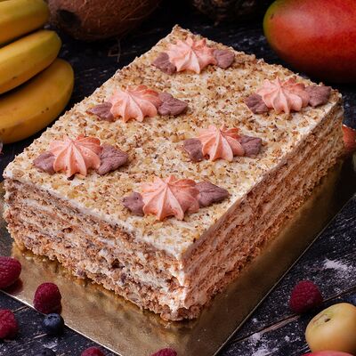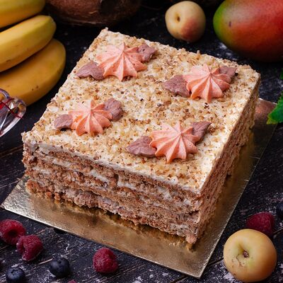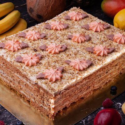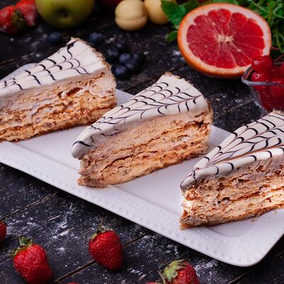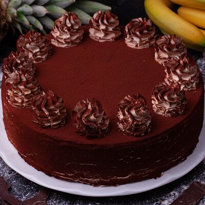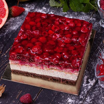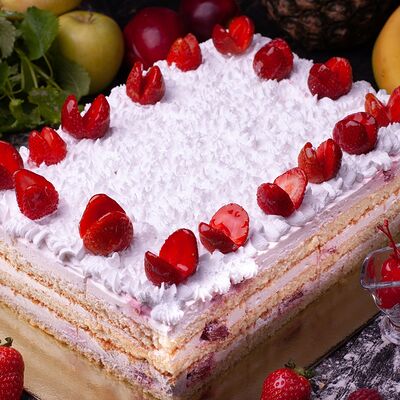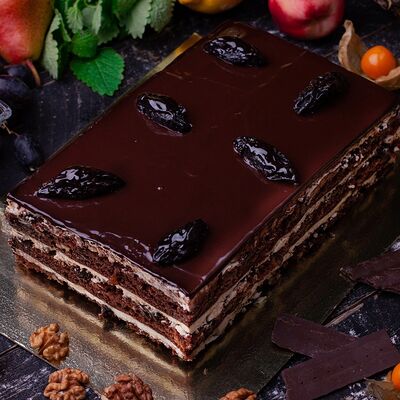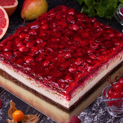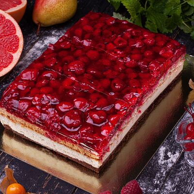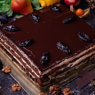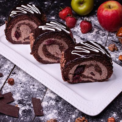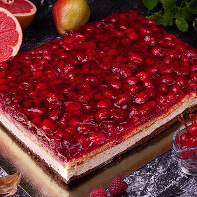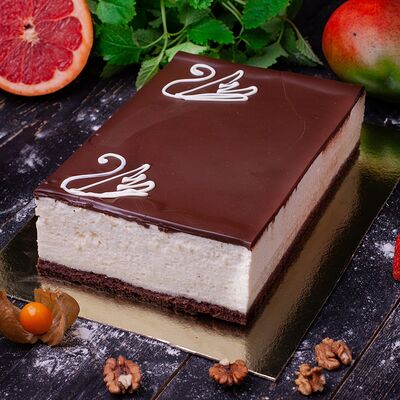 Бисквит шоколадный, крем шоколадно-сливочный, клубника